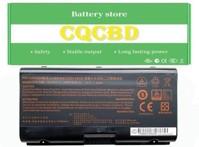 Voltage: 11.1V Capacity: 62Wh Replacement for Part Number PB50BAT-6 PB50BAT-6-62 6-87-PB50S-61D00 3INR19/66-2 Compatible Laptop Models: For Clevo Series Clevo PB51RF-G Clevo PB70EF-G Clevo PB71EF-G For Powerspec Series Powerspec 1720 Powerspec 1520
