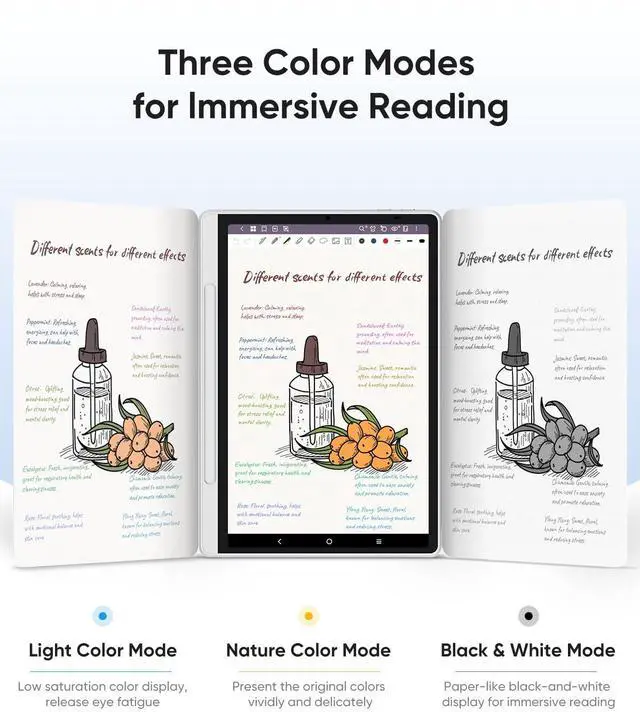 3 Color Modes: The digital notebook comes with 3 color modes. You can use the nature mode to annotate your notes, use the light color mode to sketch, and use the black and white mode to read immersed. One drawing tablet meets your different needs