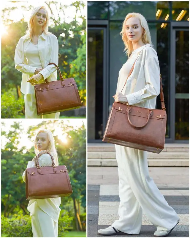 High Quality & DurabilityThis laptop tote purse is made from high-quality, water-resistant PU leather with polyester lining. It features four metal feet on the bottom, ensuring its durability and long-lasting use.