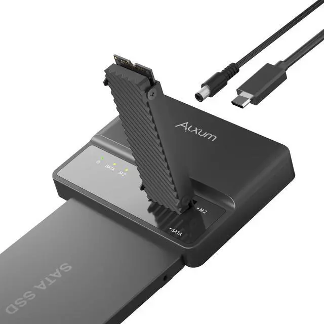 Alxum M. 2 NVME SATA SSD Enclosure External-- 2 in 1 Tool-Free Portable 10Gbps USB 3.2 SSD Hard Drive Reader for 2230/2242/2260/2280 M/B+M Key PCIE NVME M. 2 and 2.5" / 3.5" SATA SSD