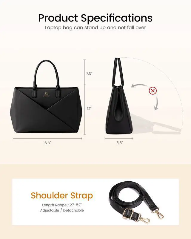 High-quality Materials: Laptop bag is your trusty companion for daily commutes. Crafted from premium PU leather, it's not only stylish but also waterproof and tough against scratches. Its thoughtful design ensures it stands upright, keeping your essentials organized and safe, making it the ideal work bag for women.
