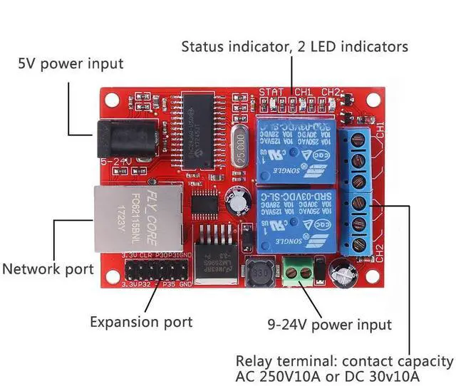 LAN Ethernet 2 Way Board Delay Switch TCP/UDP Controller Module WEB Server