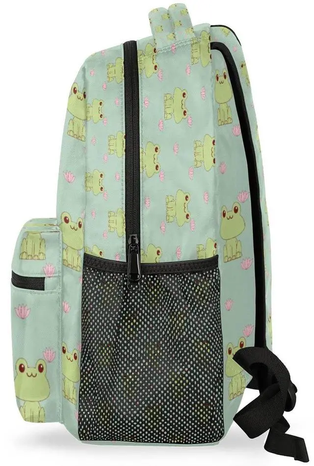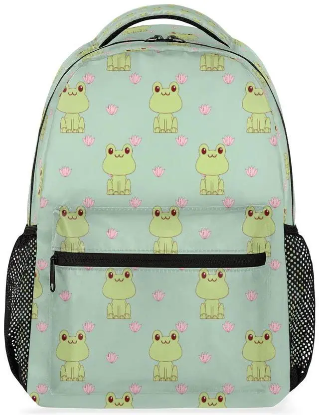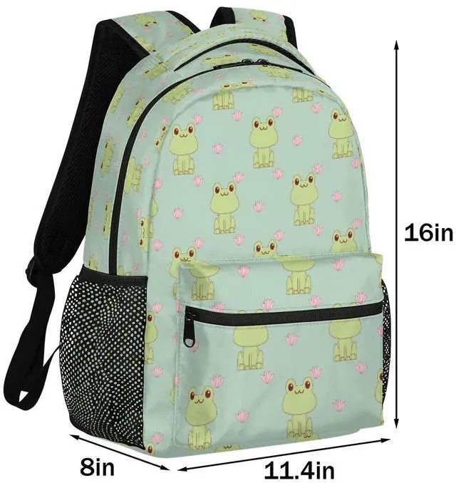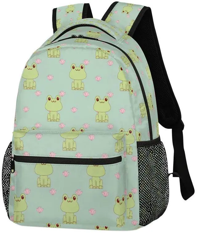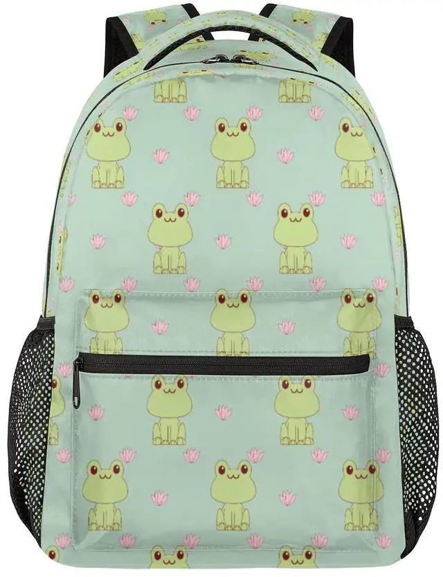 DJYQBFA Frog Lotus Theme Laptop Backpack, School Backpack with Multiple Pockets Hiking Shoulder Daypack Large College Backpack for Boys Girls Kids Teenage