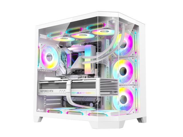 RUIX OV303 ATX Mid-Tower PC Case, Pre-Installed 4 x 120mm Prism ARGB PWM Fans, USB 3.0 & Type-C Ports, High-Airflow Gaming Computer Case - White