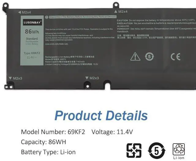 Laptop Model: For Dell XPS 15 9500 2020 Series, For Dell Precision 5550 2020 P91F Series, For Dell Alienware M15 2020 ALW15M-5758W Series, For Dell Alienware M15 R3 P87F Series, For Dell Alienware M17 2020 Series, For Dell Alienware M17 R3 P45E Series, For Dell XPS 15 9500 Core i7 4K UHD Series, For Dell G7 15 7500, i7-10750H RTX 2060 (G7 15 Series). P91F, P91F001, P45E, P45E001, P45E002P87F, P87F002, P87F003, P100F, P100F001Why Choose Us? Very easy to install. Offer stronger lasting time. Good performance A++ cells. Multiple protection prevents damage to the device. Professional technical team, quick response within 24 hrs. Replace a new replacement within 2 Years if quality problem. Professional tech teams production plants and different types of batteries are available. FAQ