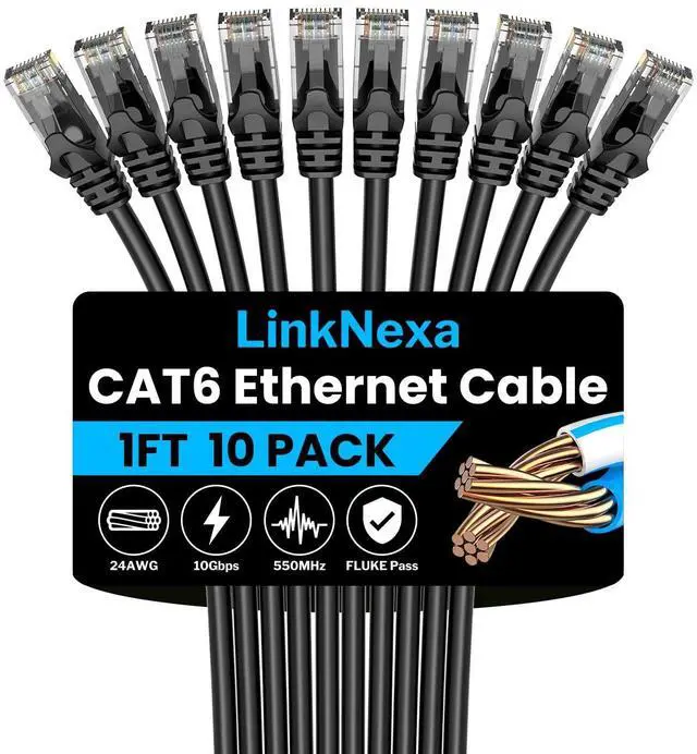 LinkNexa Cat 6 Ethernet Cable 1ft (10 Pack), High Speed 10Gbps Network Cable, UTP 24AWG Flexible RJ45 LAN Internet Cable for Computer, Router, Modem, PS4/5, Xbox, Gaming, Black