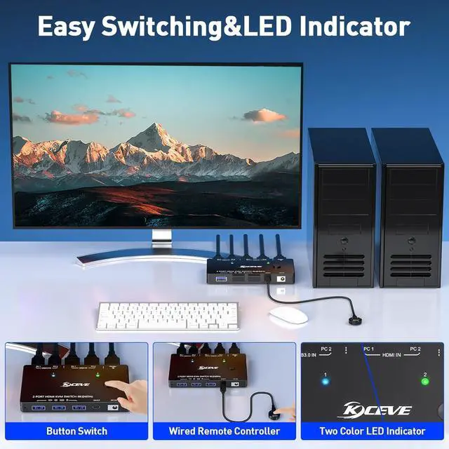 Ultra HD 8K@60Hz Visual Enjoyment This 4k KVM switch supporting resolution 8K@60Hz, make image display more exquisite and realistic, color is more bright and moving,really give a feast for your eyes.