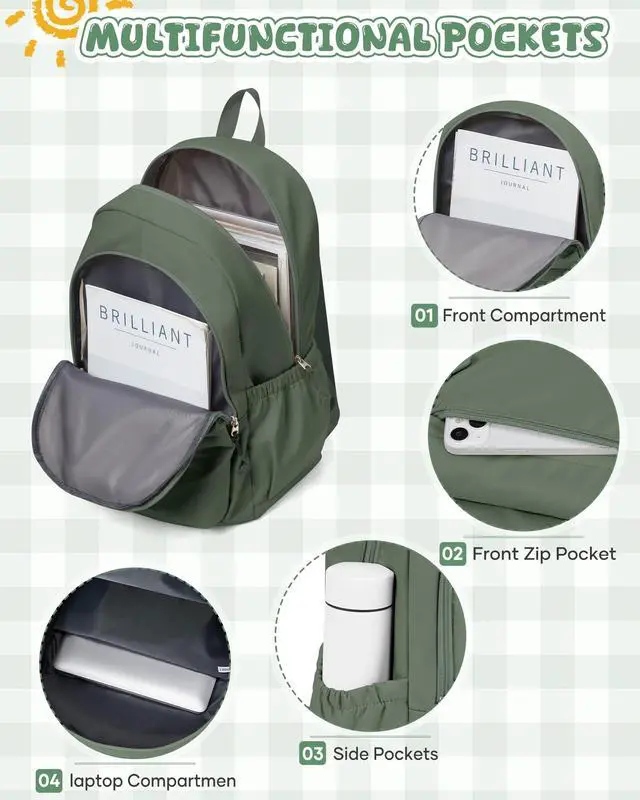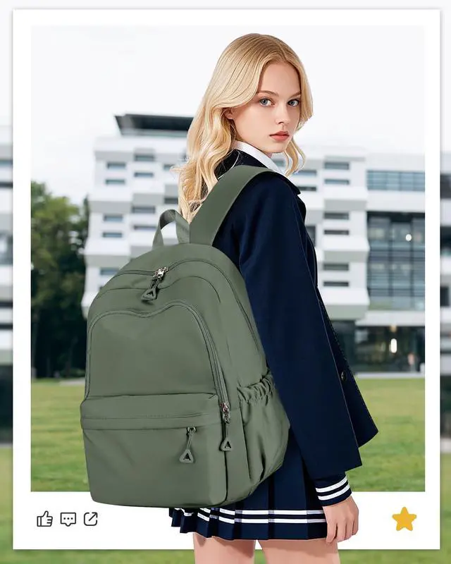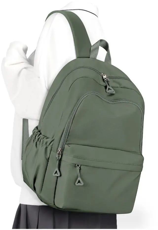 winspansy Backpack for School Teenage Girls Boys,Waterproof Lightweight School Bags Travel Daypack Simple Cute College Backpack Rucksack for Women Men fit 14 Inch Laptop,Army Green