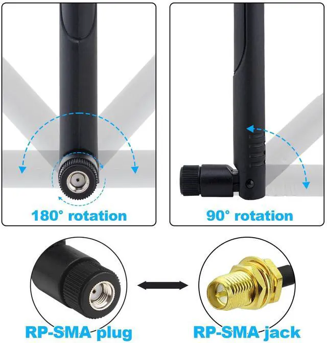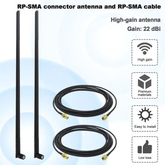 RP-SMA Male Antenna and RP-SMA Cable: this long range wifi antenna 22dbi 2.4 GHz omni-directional wifi antenna with RP-SMA Male connector. 10FT RP-SMA male to RP-SMA female RG174 coax extension cable.