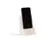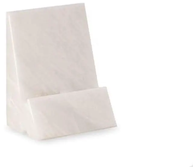 White Marble Desktop Phone / Tablet Cradle with a Pass-thru Hole for Charging Cable.