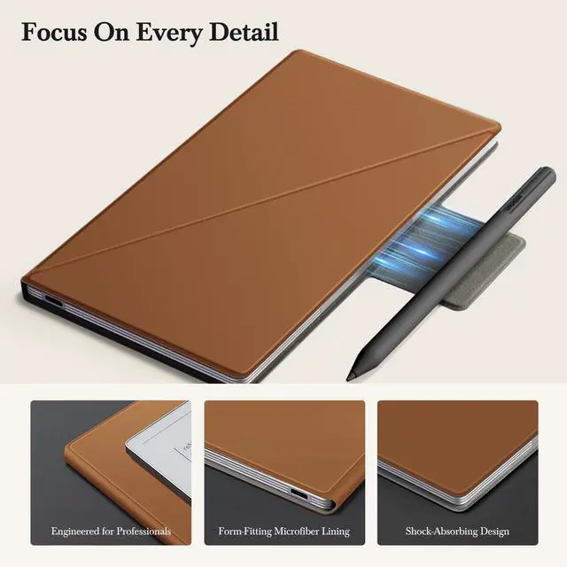 Advanced Triple-Layer Armor Protection: Features a premium PU leather exterior that is highly resistant to oil, weather, scratches, and everyday wear. The core incorporates a "Graded Energy-Dissipation Structure" for superior shock absorption, combined with a ultra-soft microfiber interior. This lining creates a 99% dust-proof seal, ensuring your screen stays immaculate for days, offering unparalleled convenience and a consistently clean display.
