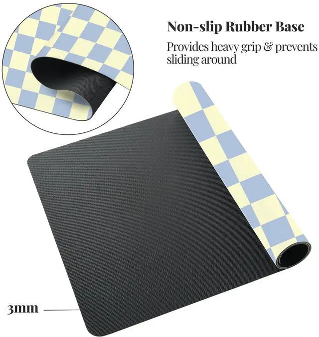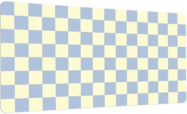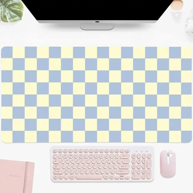 Idocolors Light Blue Checkered Grid Checkerboard Desk Mat, Cute Extended Gaming Keyboard Mouse Pad, Large Office Desk Cover Mat Pad Deskmat, Non-Slip Leather Home Office Desk Mat Protector 31.5" × 15.7"