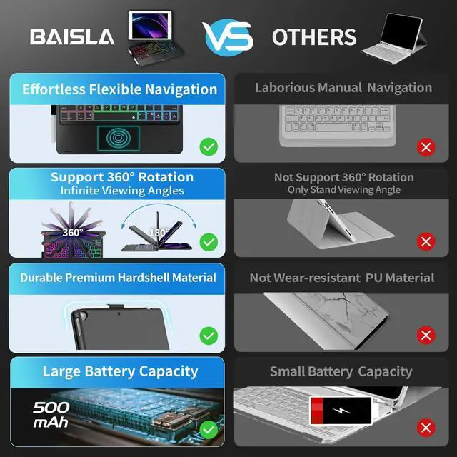 Large Battery CapacityWith a built-in 500mAh large battery and efficient chip, our 9th generation iPad case with keyboard delivers 3x faster connection - giving you a comfortable, accurate, smooth typing experience! Fast charging with the included Type-C charging cable, it can be fully charged in just 3 hours