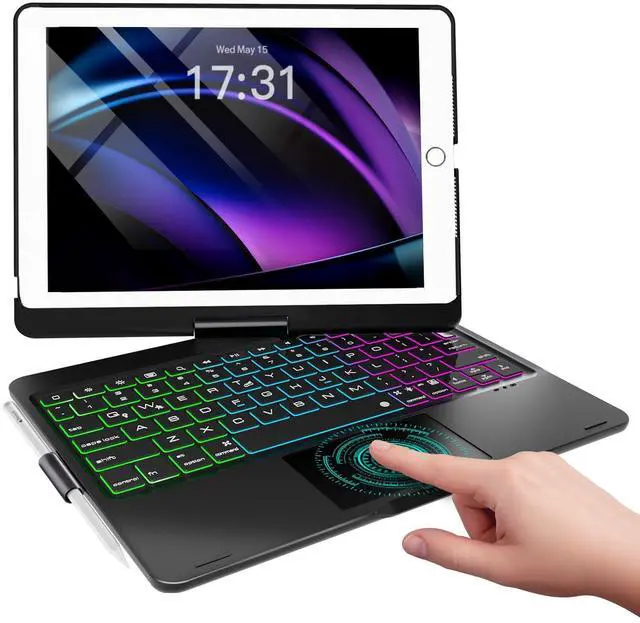 Baisla iPad 9th Generation Case with Keyboard 10.2" (2021), 360° Rotatable with Trackpad & Rainbow Backlit, iPad Keyboard case for 9th/8th/7th, iPad Air 3, iPad Pro 10.5 (Black)