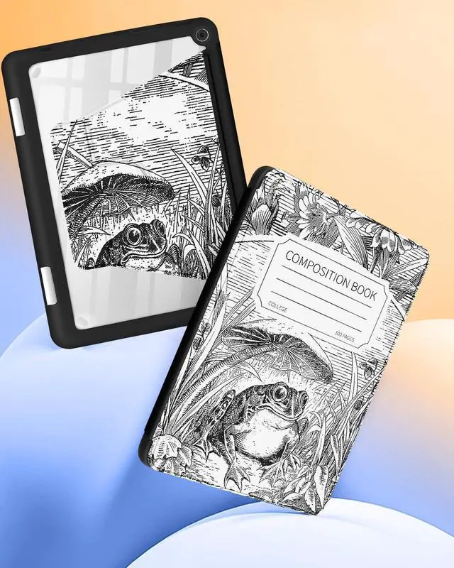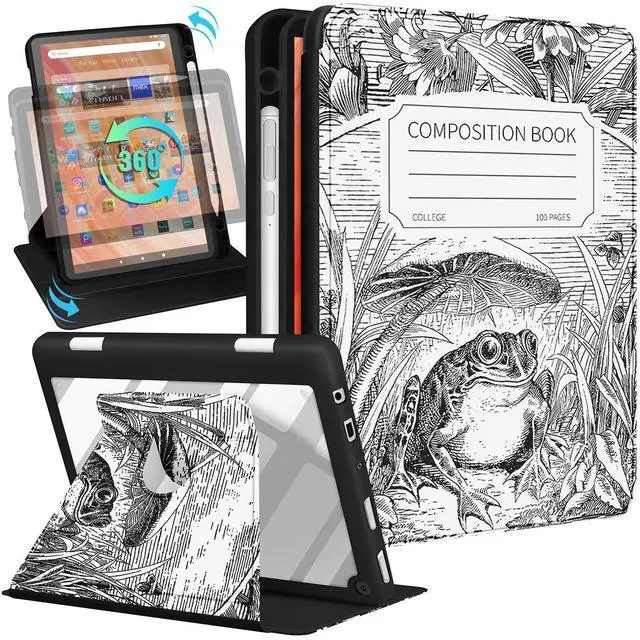 Kidcube for Kindle Fire HD 10/10 Plus Tablet Case - 13th/11th Generation (2023/2021) 10.1" Women Girls Cute Frog Design Teens Rotating Stand Pencil Holder Folio Cases for Amazon Fire HD 10/10 Plus