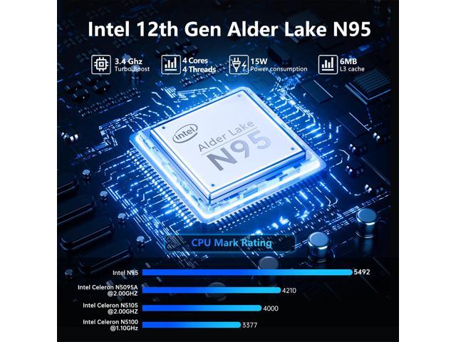 - [Advanced Processor]: The laptop features the latest Int 12th generation Alder Lake N95 processor with 3.4GHz boost frequency, 4 cores and 4 threads, providing powerful performance for multitasking, streaming, and gaming.