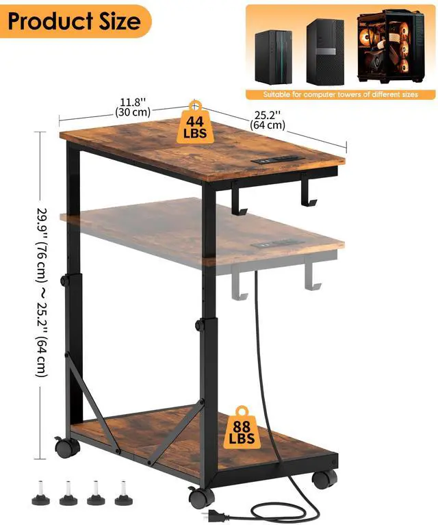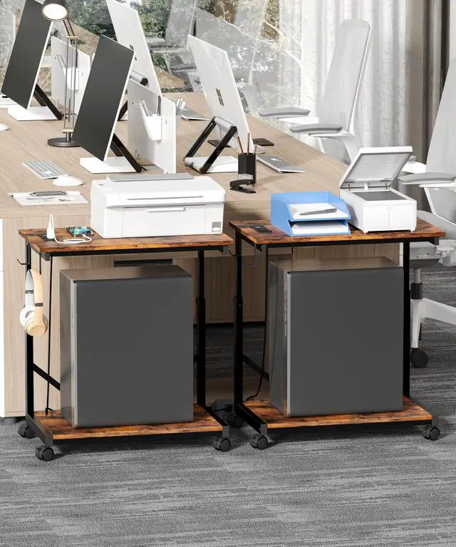 Spacious desktop: The desktop size of this computer stand is 25.2''D x 11.8''W. Our 2 tier mobile cpu stand can meet most storage needs. The spacious desktop is suitable for placing laptops or printers, and store the computer tower at the bottom of the cpu stand