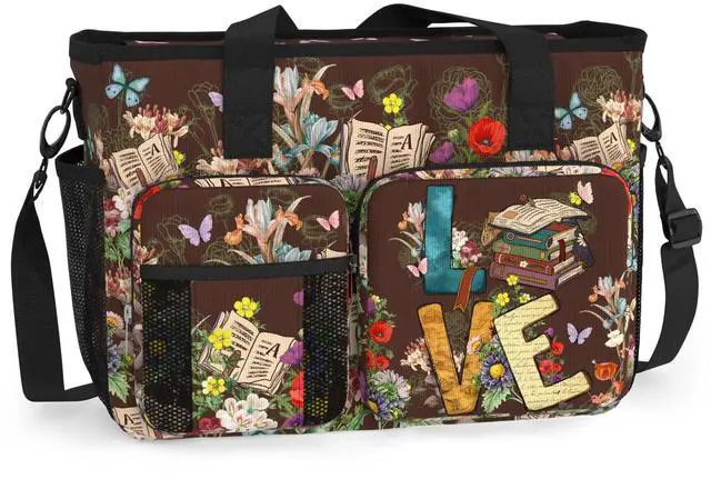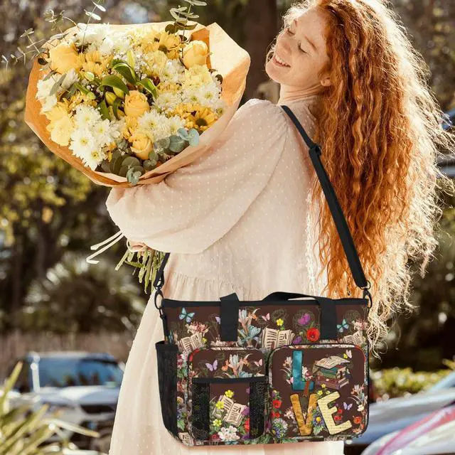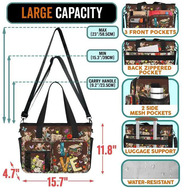 Waterproof Work Bag with Large Compartments, Padded Laptop Storage and Multiple Pockets. Librarian Gift for Book Lovers. Shoulder Bag for Work. Love Books.