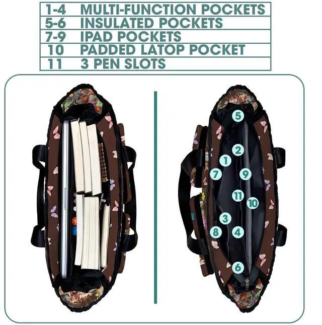 LOTS OF POCKETS: We put a lot of thought into making this bag super practical and comfy for you. Along with special pockets for your laptop, tablet, and pens, we've added plenty of other handy compartments. Plus, we've padded each side
