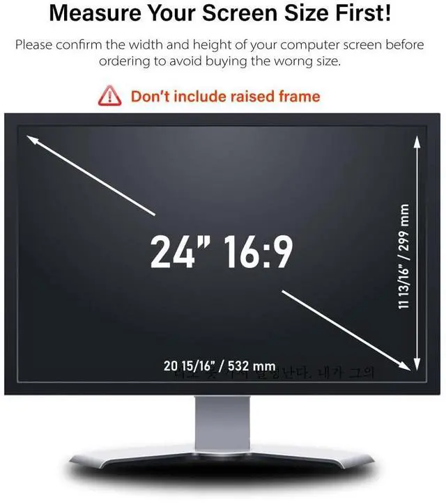 Size : 24 Inch 16:9 Welinc Privacy Screen Filter for 24 inch 16:9 widescreen. Filter Dimensions : width 20.9" (532 mm), height 11.7" (299 mm) Keep your computer screen private from coworkers and onlookers. Welinc monitor Privacy Screen Filters are compatible with laptops, notebooks, desktops, and all-in-one computers. They are ideal for open office settings, schools, financial institutions, mortgage companies, and medical offices.