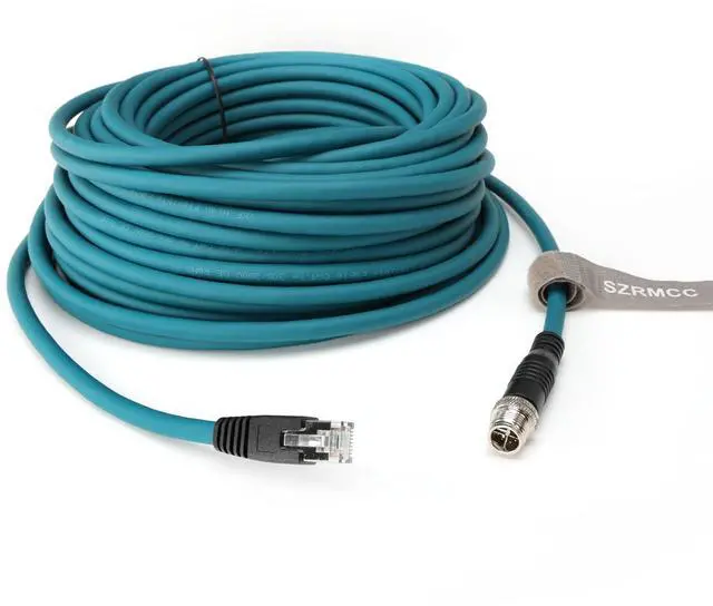 M12 High Flex GigE Vision Cables, which has been designed for Cognex In-sight 2000, 8000, 9000, 8405, 8200, 8400, 8402 vision sensors; Cognex Insight 3D L4000; Cognex DataMan 470/ 260 Reader: 262, DM260Q, DM262QL; Basler ace 2 pro/Basic GigE Vision; Basler blaze 111,101,102; Luxonis OAK-D Pro PoE; Teledyne DALSA BOA; Matrix Vision Lucid Triton GigE Vision Cameras, and other Industrial Machinery, automated inspection and measurement, network applications, supplying power to the vision system.