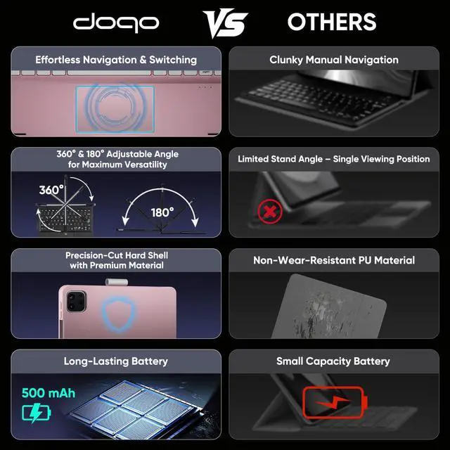 doqo for iPad Air 11 and iPad Pro 11 case with Keyboard, 360° Rotatable Keyboard case for iPad Air 11 M3 2025/M2 2024, air 5th, 4th 10.9, iPad Pro 11(4th, 3rd, 2nd, 1st Gen) with Multi-Touch Trackpad (Pink)