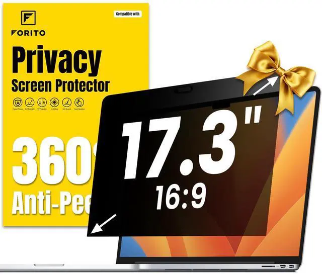 Upgraded 360° anti-peeping film With its innovative 360° privacy design, F FORITO 17.3 inch privacy screen for laptop offers unparalleled protection for your personal information. By effectively restricting the viewing angle to only the user in front, it prevents unauthorized individuals from seeing your display from the sides or behind