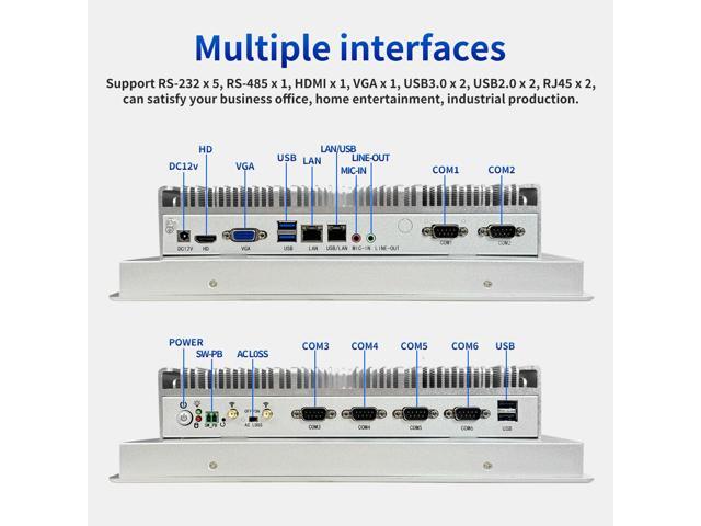Efficient Heat Dissipation Design - This industrial panel pc features a fanless design for quiet operation. The back cover is made of high-strength aluminum for excellent heat dissipation. This industrial computer also offers excellent anti-interference, high and low temperature resistance, dust resistance, and vibration resistance.