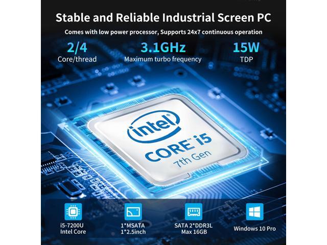 Powerful Processor - This industrial-grade touchscreen Industrial panel pc features an Intel i5-7200U processor with a maximum frequency of 3.1GHz, delivering exceptional performance at a 15W TDP. Windows 10 System supports stable operation of a wide range of industrial and commercial applications.