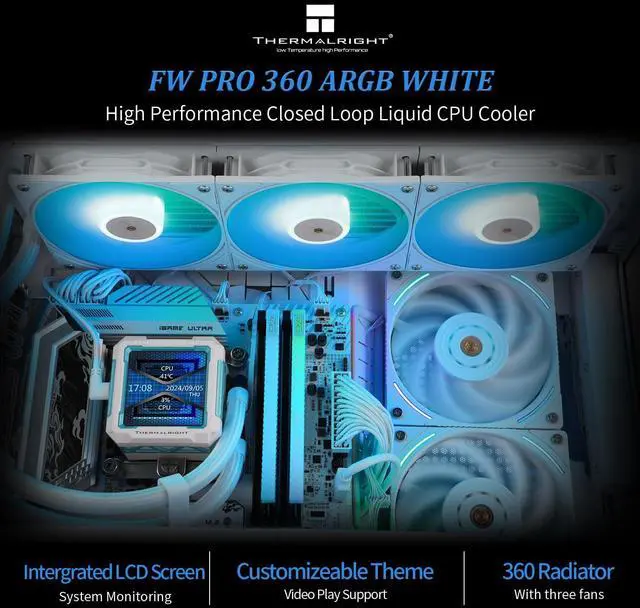 Thermalright FW PRO 360 ARGB White CPU AIO Cooler, IPS LCD Screen with 320 * 320 Resolution, for AM5&Intel 1700/1851, High-Performance 360 Specs Water-Cooled with 2.73 in Removable Display