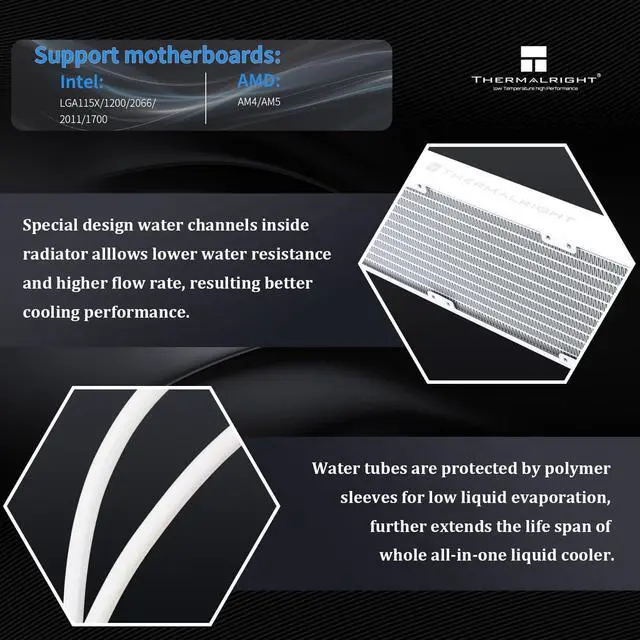 [Magnetic suction removable LCD screen] The water pump of the water-cooled cooler is a new generation of water pump system, which not only enhances the heat absorption efficiency, but also reduces the operation noise. Unlike ordinary water pumps, the water pump is a new IPS LCD screen, which can support DIY various static & dynamic picture switching, and support the system to cast the screen display (subject to the software), which increases the visual interest at the same time of high heat dissipation.