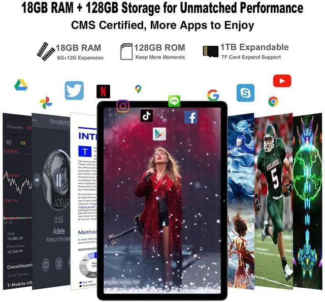 High-Performance Processor & Ample Storage: Powered by the Unisoc T616 Octa-Core 2.0GHz processor, this tablet delivers smooth and responsive performance. With 18GB RAM (6GB + 12GB extended) and 128GB ROM, plus support for up to 1TB TF card expansion, you get seamless multitasking and massive storage capacity for apps, media, and files