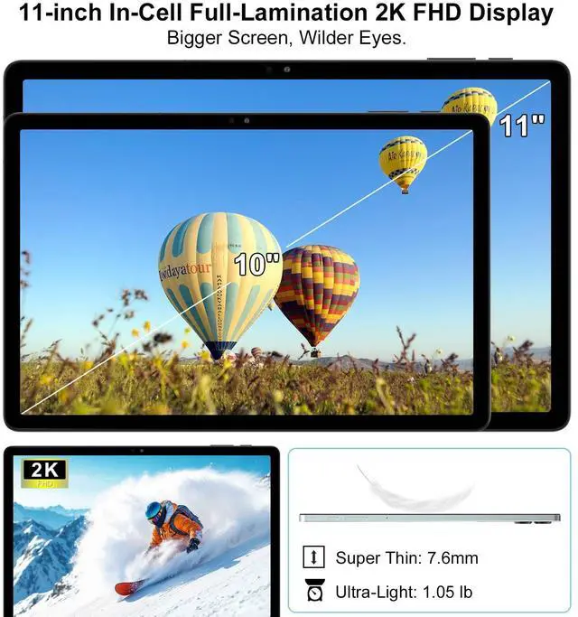 11" 2K In-Cell Display for Stunning Visuals: Featuring a 2000x1200 In-cell 2K display, this tablet boasts enhanced pixel density and true-to-life color reproduction. Whether streaming movies, gaming, or reading, enjoy an immersive, glare-free viewing experience with vibrant details