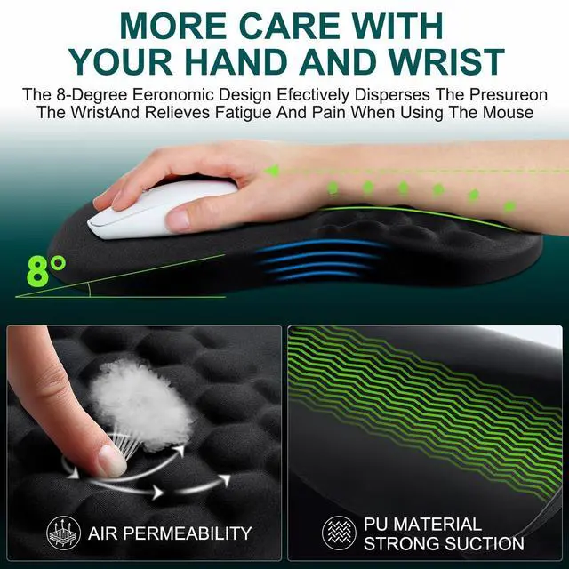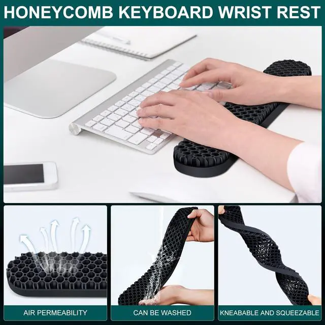 Honeycomb Wrist Rest For Keyboard:The 0.9-inch high wrist rest is combined with the keyboard to improve typing angle, which is ergonomic and avoids joint and wrist fatigue, relieving pressure on the elbows and shoulders during prolonged use o