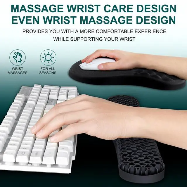 Ergonomic Massage DesignDesigned with breathable materials, our gel mouse wrist rest is both light and durable. The soft cushioning offers excellent massage for your wrist, promoting circulation and reducing discomfort. Suitable for extended periods of typing, this small, yet comprehensive set enhances productivity and comfort