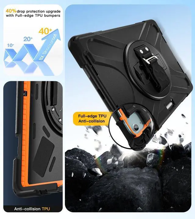 [Full Body Protection &Kids Friendly]:This case for ipad air 11 inch & iPad pro 11 inch features triple-layer construction and extra orange TPU cushioning strips, the outer silicone layer reinforces the dropproof performance of all four corners, plus there are 4x shockproof sponge pads on the bottom cover to prevent scratches to your tablet.Provides the ultimate in protection and durability, safe for kids to use.
