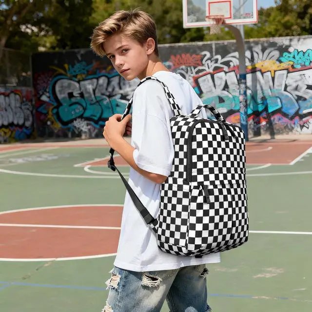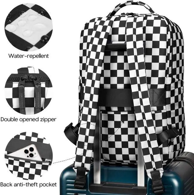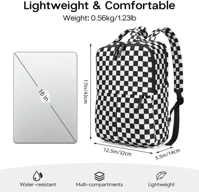 AMZFROG Checkered Backpack for Women Fashion Backpacks with Laptop and Multi Compartment for Travel and Work Black White Check