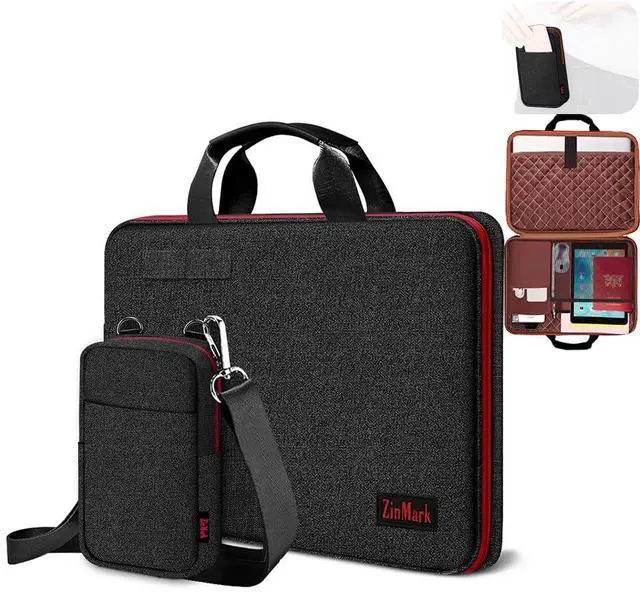 Laptop Case 15.6 Inch Briefcase Military-Grade Protection with Detachable Belt Bag, Compatible All Model of 15-16 Inch MacBook Pro and Most Popular 15.6 Inch Notebooks Chromebooks (Black Red)