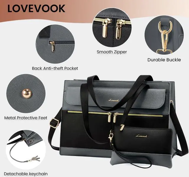 Waterproof & Professional Laptop Bag:The womens laptop bag is made of high-quality cross pattern PU leather and high-density nylon lining.it is water-resistant,scratch-resistant, wear-resistant and anti-wrinkle,easy to clean.Stretchable Key Fob Hook inside the shoulder bag can help get your keys easily,save your time.Reinforced flat bottom with 4 rivets will reduce friction and scrape of bottom of the ladies office bag,It lasts longer than other women computer tote bags