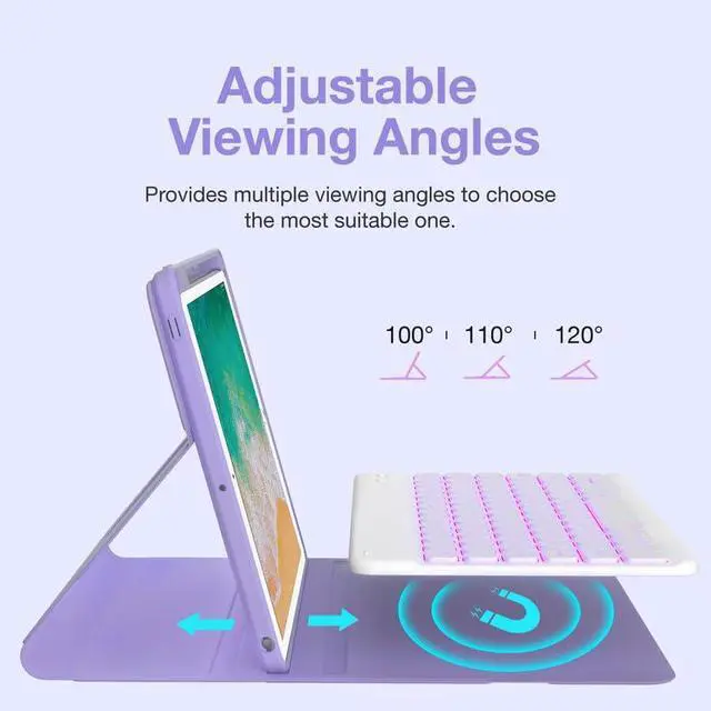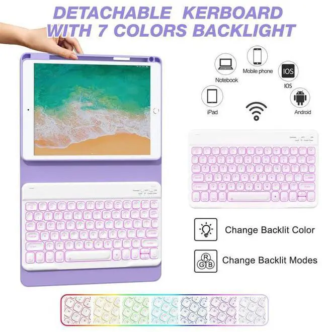 7 Color BacklitOur keyboard case using a flip magnet separate design with built-in Backlit giving you amazing versatility. Different angles of standing on the bot