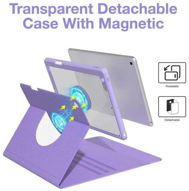 360 Rotatable MagnetciallyRemovable Shell & Wireless Bluetooth keyboard that transforms your into a highly performant and easy to use laptop or your favorite book in less than a second. Layout with Hot keys Customized for iPads, Including Volume, Music Control, Brightness etc, with mute and ergonomic design, gives you a skin-like touch feeling and provides all-day comfort for work and entertainment.