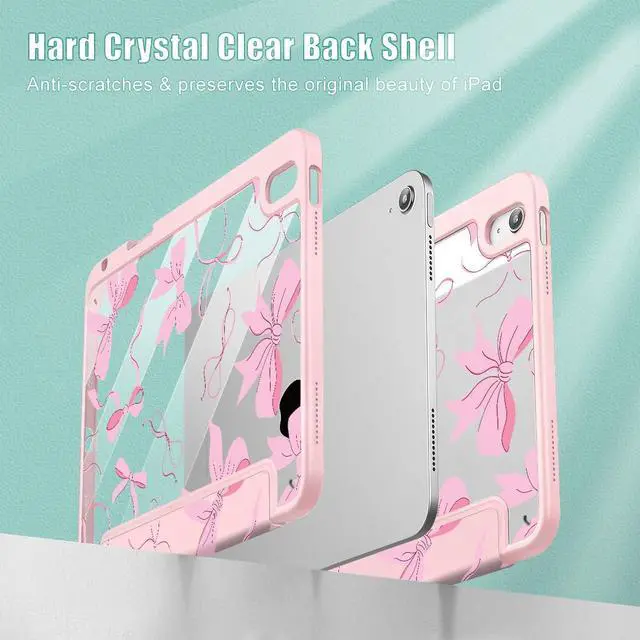 May Chen for iPad (A16) 11th Generation Case 11 Inch 2025, iPad 10th Gen Case 2022 10.9 inch, Built-in Pencil Holder with Shockproof Cover Clear Transparent Back Shell Auto Wake/Sleep, Pink P631 Bows