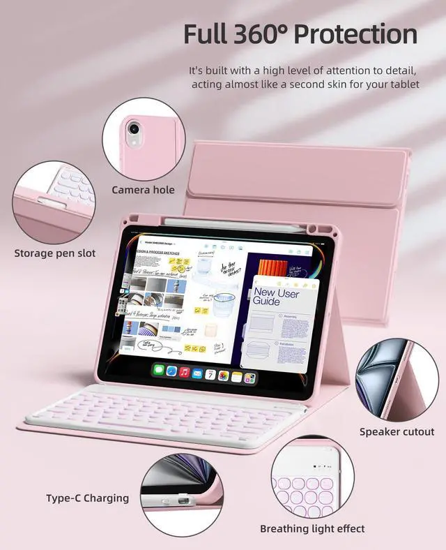 Precision Compatibility The Keyboard Case Designed for new iPad Air 11-inch (M3) 2025 (Model Number: A2902/AA2903/A2904), for iPad Air 11-inch (M2) 2024 (Model Number: A3266/A3267/A3270), for iPad Air 5th Generation (Model Number: A2588/A2589/A2591), for iPad Air 4th Generation 10.9 inch (Model Number: A2316/A2324/A2325/A2072). ( Note: Please remove the film on both sides of the back shell before putting on the protective cover).