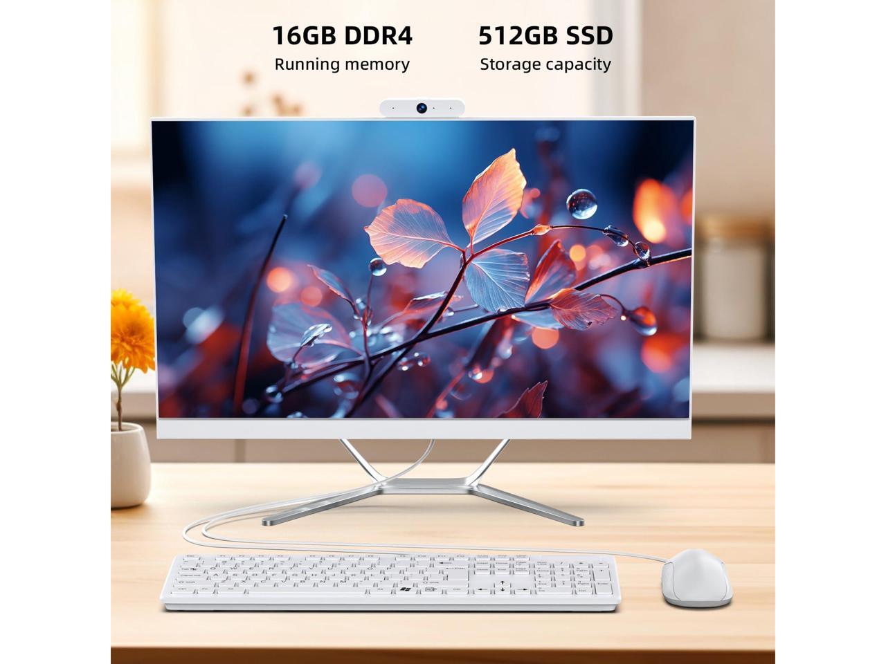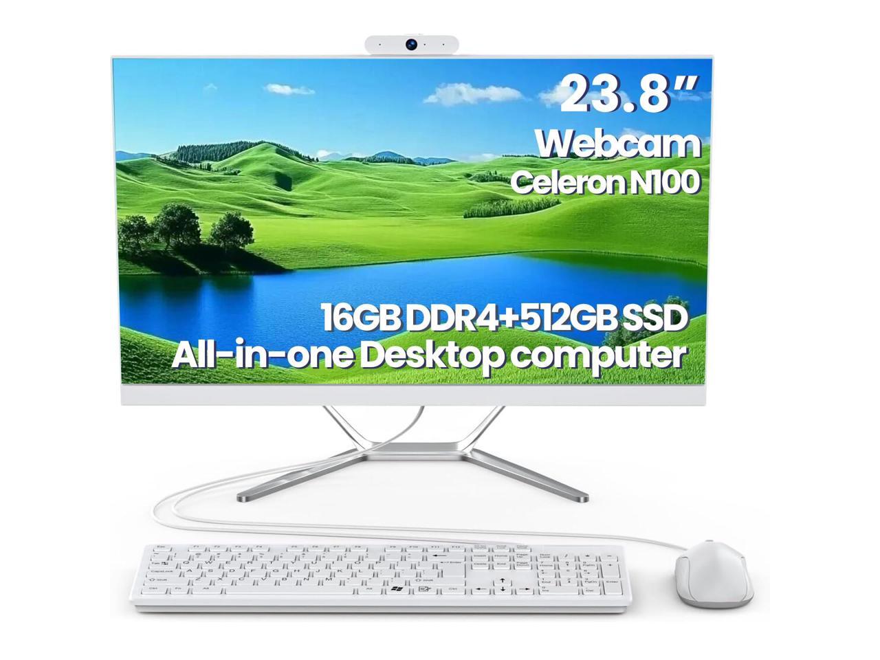 All-in-One Desktop Computer: This all-in-one desktop computer with HD webcam makes surfing the web easier and faster, and you can clearly see your friends and family in faraway places through the webcam. It comes with Celeron N100 processor, 16GB RAM,512GB SSD, Alder Lake N100 (Up to 3.4GHz) with 2.4Ghz/5.0Ghz dual-band Wifi support,And it comes with Wired Keyboard&Mouse