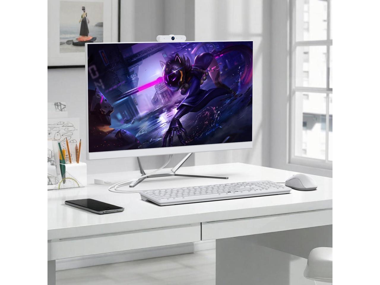 All-in-One Desktop PC: The 23.8-inch Full HD display makes work, play and projects look crisp and clear. Realistic Graphics,The Celeron N100 processor delivers life like images that bring visuals to life!The all-in-one desktop computer includes various por