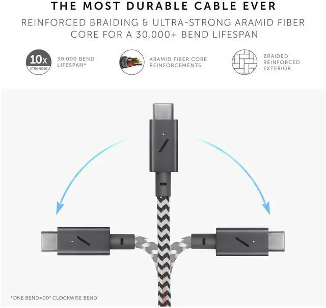 ULTRA-STRONG: Durable nylon braided cable featuring a reinforced structure crafted with DuPont Kevlar fiber for unparalleled strength. O-Flex strain relief design at connect