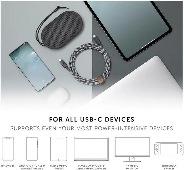 MADE FOR USB-C / TYPE-C DEVICES: Charge & sync your most powerful Type-C devices from any USB-C port. iPhone Air, 17, 17 Pro, 17 Pro Max, iPhone 16, 16 Plus, 16 Pro, 16 Pro Max, MacBook 2017-2025, iPad Pro (2018 and later), iPad Air 4 (2020), iPad Air 5 (2022), iPad mini 6 (2021); Samsung Galaxy S25/ S25+/ S25 Ultra; Samsung Galaxy Z Flip 7/ Fold 7; Google Pixel 10 / 10 Pro / 10 Pro XL; Microsoft Surface Pro 11/10, Surface Go 3 and more