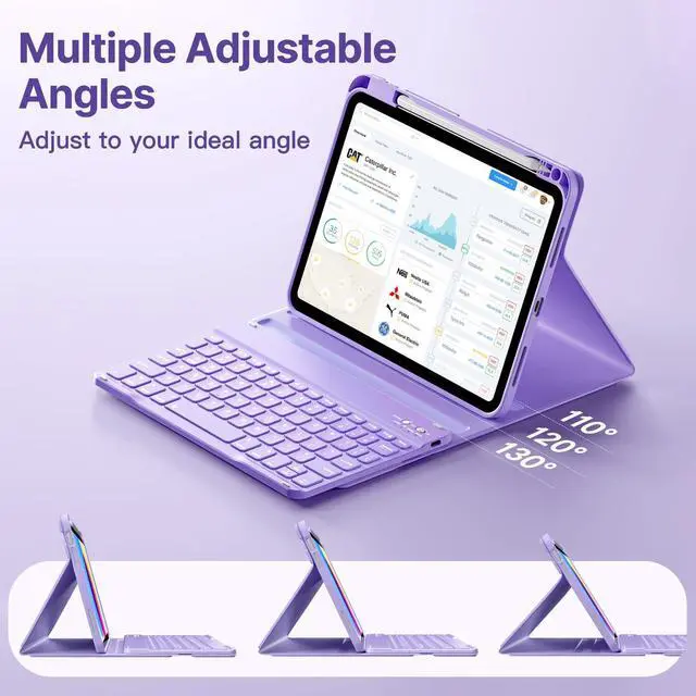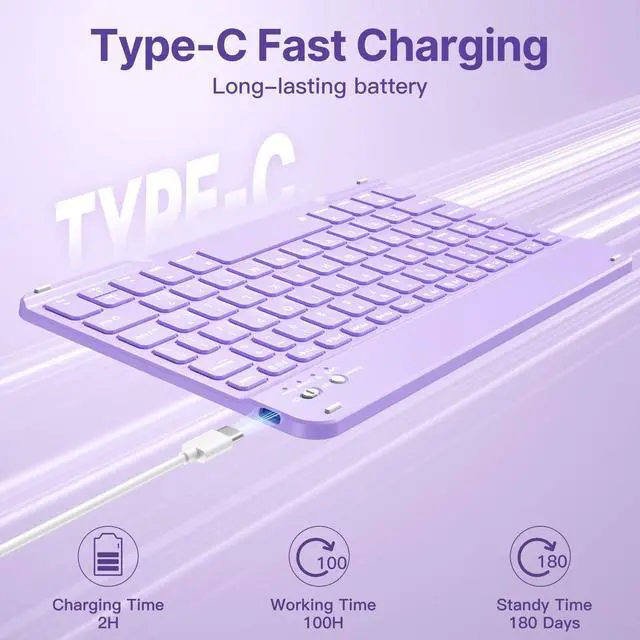 Long-life Rechargeable Keyboard Keyboard for iPad 10th generation has a built-in rechargeable lithium battery, no replacements needed, saves hassle from frequent purchases. Fully charges in 23 hours, lasts up to 72 hours, and auto-sleeps after 15 minutes unused to save power (wakes instantl
