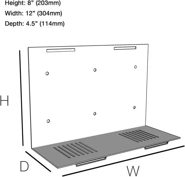 Dimensions: 8" Height x 12" Width x 4.5" Depth. Capable of holding up to 150lb s with proper installation.