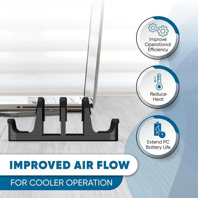 Modern Design: Optimize your desk with an aluminum finish vertical laptop stand: cradle and hold your laptop or MacBooks, and mobile devices in style. Save valuable desk space, protect your device from spills, and provide better cooling with a vertical laptop holder.
